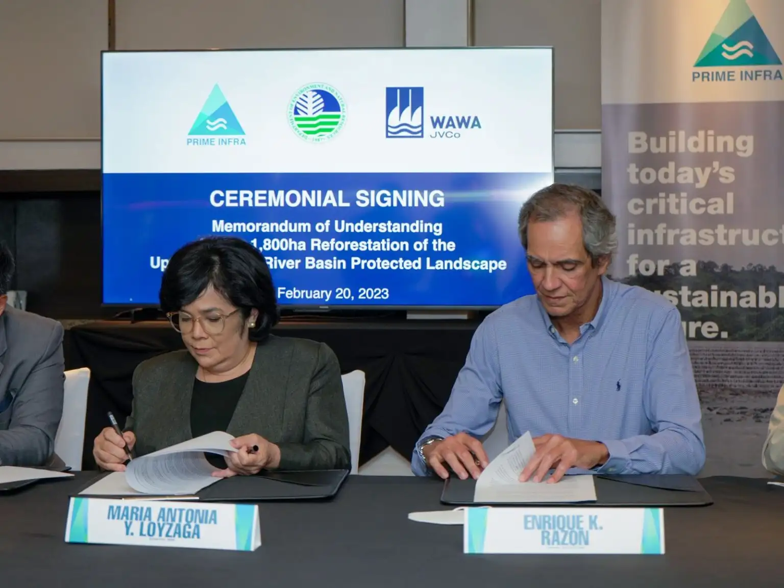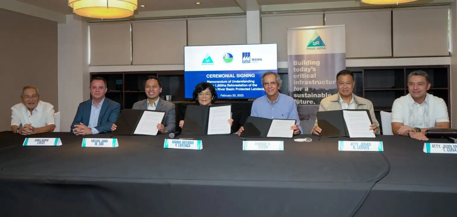 The Department of Environment and Natural Resources (DENR) and Prime Infra-led WawaJVCo Inc. signed a Memorandum of Understanding (MOU) for the reforestation of a 1,800-hectare area within the Upper Marikina River Basin Protected Landscape (UMRBPL).